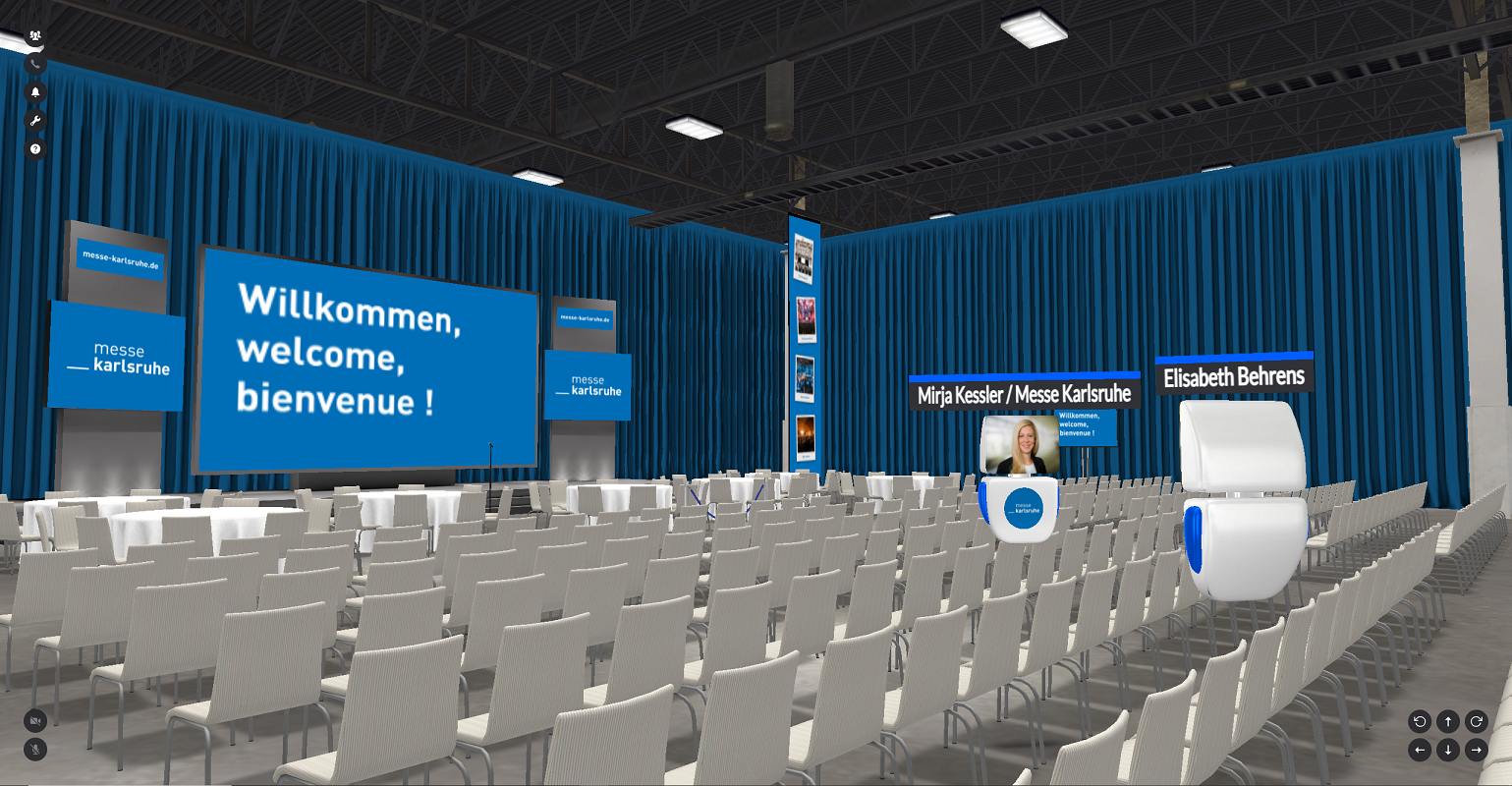 Ab sofort bietet die Messe Karlsruhe einen digitalen 3D-Zwilling der Gartenhalle des Kongresszentrums Karlsruhe für hybride und digitale Messe- und Kongressformate sowie Networking- und Firmenevents an. Auf der Plattform Allseated exVo können sich Teilnehmende als Avatare frei in der digitalen Nachbildung der Location bewegen, virtuelle Messestände besuchen und spontane Videokonferenzen mit dem virtuellen Gegenüber führen.