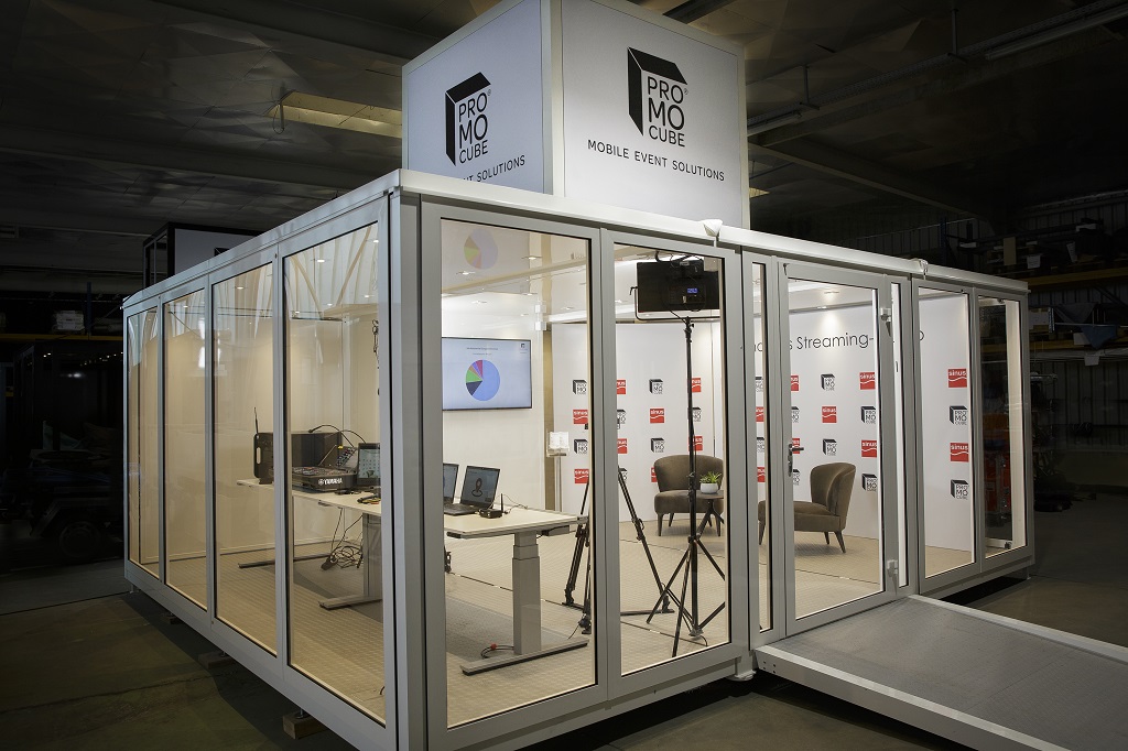 Ab sofort bieten Promocube, Anbieter mobiler Event-Module, und der Technikdienstleister Sinus Event-Technik ein mobiles Streaming-Studio an. Auf Bestellung kommt das voll ausgestattete Set-Up direkt zum Kunden. Das Angebot richtet sich vor allem an Unternehmen, die sich nicht in ein bestehendes Studio einmieten oder ein eigenes Studio am Unternehmenssitz einrichten wollen.