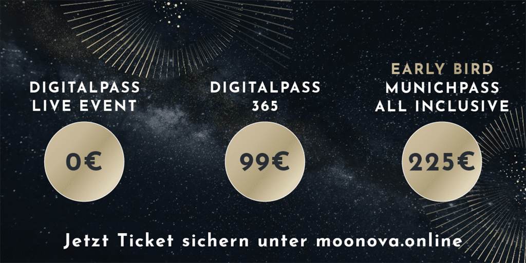 Wer lieber digital am Event teilnehmen möchte, kann sich für den „DIGITALPASS LIVE EVENT“ registrieren und erhält kostenfrei Zugang zum Event-Portal mit allen Live-Vorträgen. Wer am Matchmaking und von weiteren Vorteilen partizipieren will, benötigt einen „DIGITALPASS 365“ (99 Euro). Als ganz besonderes Special erhalten die Teilnehmer auch ein digitales Drei-Monats- beziehungsweise Halbjahres-Abo der W&V oder INTERNET WORLD ab Januar 2022, ein virtuelles Goodie-Bag mit speziellen Deals der MOONOVA-Partner sowie Zugriff auf die Anbieter-Datenbank und Marktübersicht.