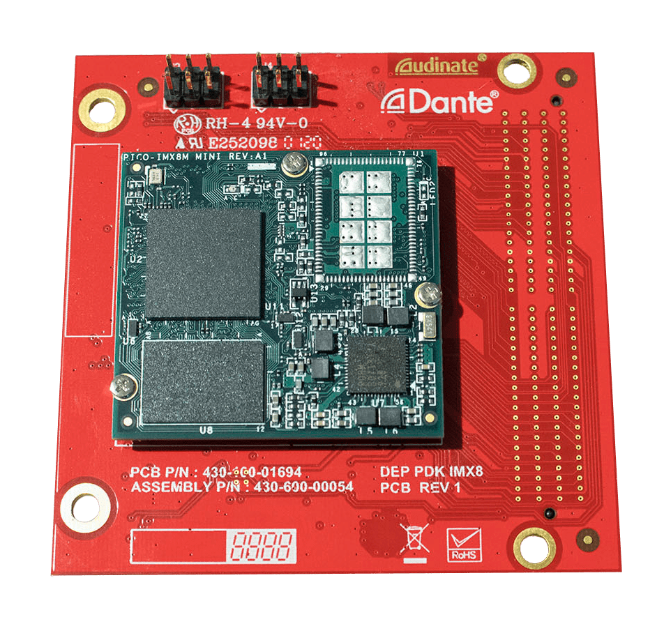Das Dante Embedded-Platform-Referenzdesign-Kit für den i.MX 8M Mini QuadLite Prozessor von NXP wurde von Audinate für die Dante-Leistung validiert und ermöglicht OEMs ein konfliktfreies Design. Es soll bis zu 64×64 verlustfreie Audiokanäle mit einer Latenzzeit zwischen 2 ms und 10 ms unterstützen und vollständig kompatibel mit allen anderen Dante-fähigen Produkten und Dante-Tools wie Dante-Controller, Dante Virtual Soundcard und Dante Domain Manager sein.