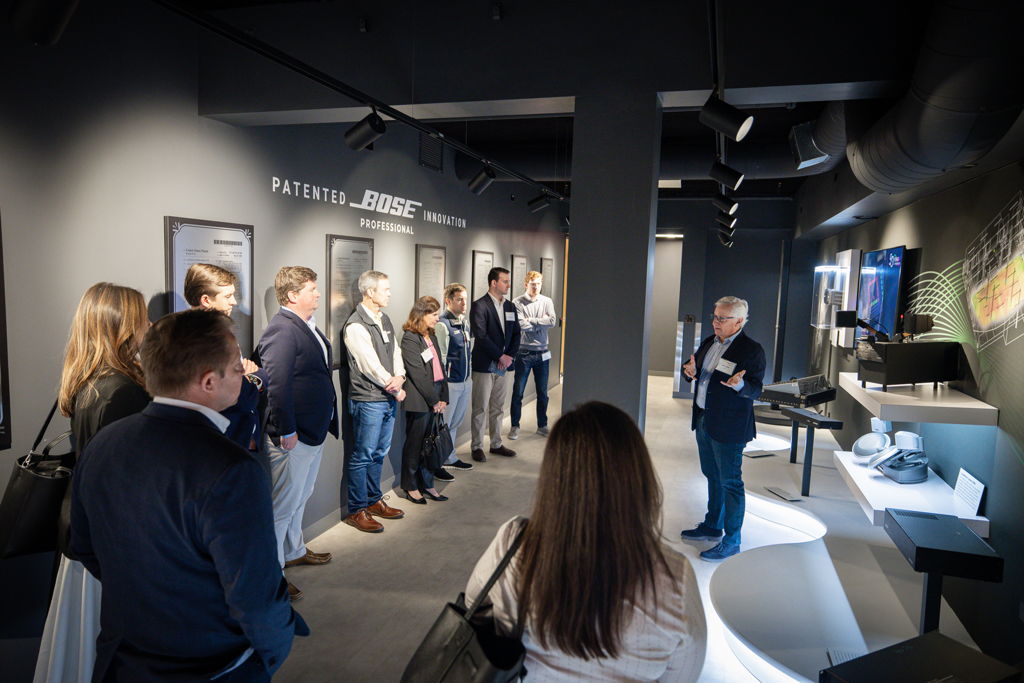 Nur wenige Schritte vom Museum entfernt befindet sich das Experience Center, in dem das aktuelle Sortiment an Hardware- und Softwarelösungen von Bose Professional auf einer Fläche von 520 m² in einer immersiven Umgebung präsentiert wird. Diese biete die Möglichkeit, Schulungen durchzuführen und die für die Marke wichtigen Werte zu demonstrieren. „Das Experience Center war ein echtes Herzensprojekt des Teams“, so Adam Shulman, Director of Audio Systems Design. „Es wurde mit Blick auf das Hörerlebnis unserer Kunden und deren Installationsumgebungen konzipiert. Alle von uns verwendeten Halterungen und Befestigungssysteme sind vertreten und aufgrund der Größe und der akustischen Eigenschaften des Centers können wir unsere leistungsfähigsten Lösungen so präsentieren, dass der beabsichtigte Klang voll zur Geltung kommt. Dank vorausschauender Planung sind außerdem Erweiterungen in der Zukunft problemlos möglich.“ Die Installation umfasst über 300 m Kabelschutzrohre aus Metall, 6,4 km Lautsprecher- und Datenkabel, raumakustische Maßnahmen auf einer Fläche von 740 m² sowie 70.000 Watt Leistung für Lautsprecher, Video und Beleuchtung.