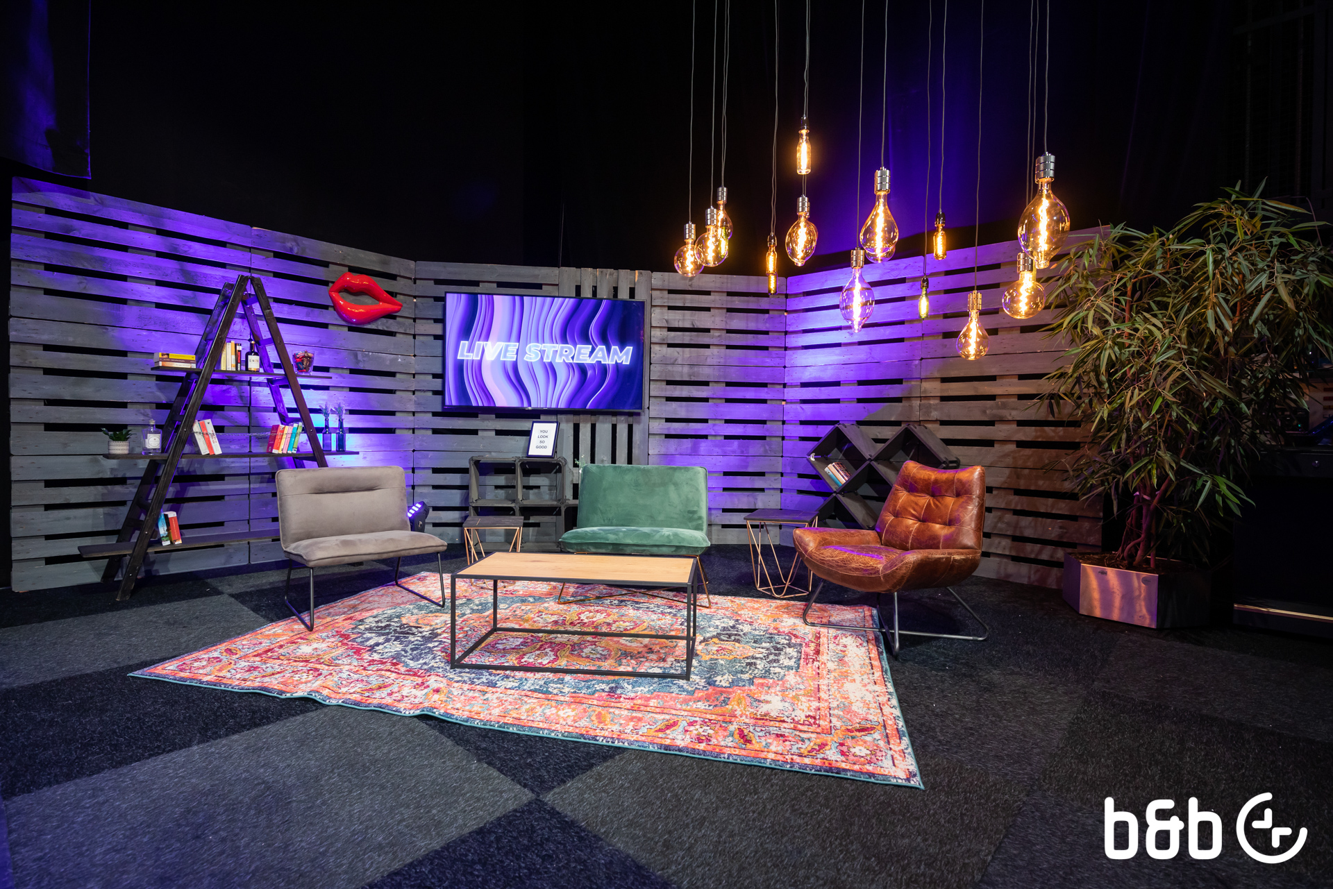 Auf der großen Bühne im Kombisaal der FILharmonie wurden neben dem Hauptstudio mit 66 m² zwei weitere Breakoutbereiche mit Wohnzimmer- und Industrieatmosphäre aufgebaut, die auf Wunsch in Ausstattung, Requisiten und Licht thematisch individuell angepasst werden können. Diese, auf über 100 m² ausgelegte Szenenfläche, soll eine abwechslungsreiche Veranstaltungsdramaturgie ermöglichen, in der per Kameraschwenk von einer Szene zur nächsten gewechselt werden kann. Die Bühne ist befahrbar und bietet durch ihre Tiefe entsprechende Gestaltungsspielräume, beispielsweise für Produktpräsentationen. Ergänzt wird das Angebot durch die zusätzlichen vorhandenen Räume, die beispielsweise für Green-Screens, Workshops oder Presseveranstaltungen genutzt werden können.