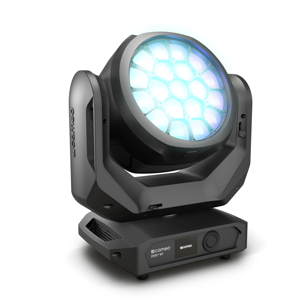 Der Evos W7 ist ein RGBW LED Wash-Beam Moving Head mit Single Pixel Control und überzeugt mit einem natürlichen LED-Licht auf Basis der integrierten Warmweiß-LED. Im Vergleich zu anderen Geräten bietet der Cameo Evos W7 einen besonders hohen Farbwiedergabeindex und ermöglicht die natürliche Ausleuchtung in RGB, warmweiß und Pastellfarbtönen sowie Pixeleffekte dank der einzeln ansteuerbaren 40W RGBW-LEDs.
