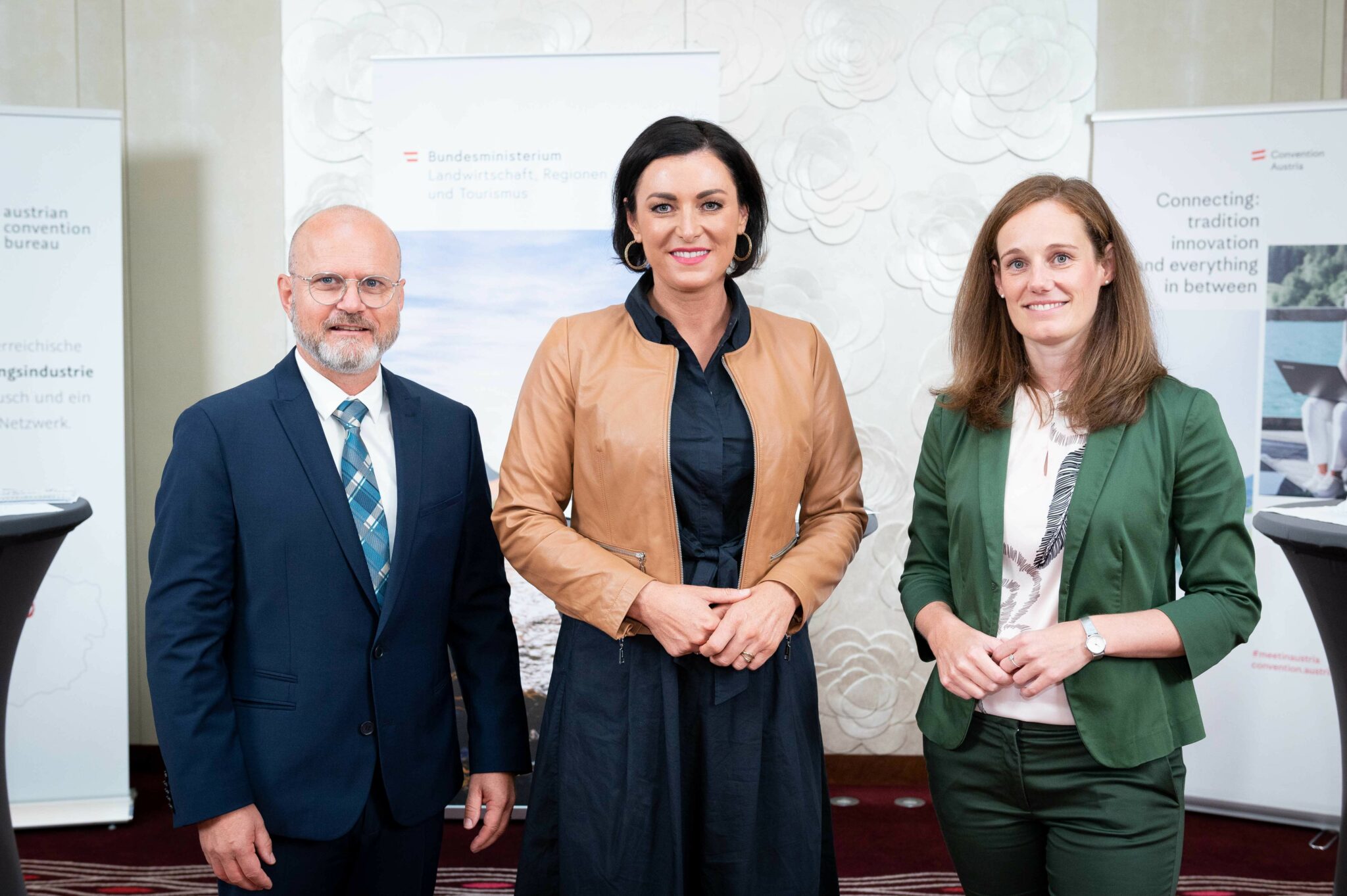 In einer gemeinsamen Pressekonferenz haben Tourismusministerin Elisabeth Köstinger, Österreich Werbung Geschäftsführerin Lisa Weddig und Gerhard Stübe, Präsident des ACB & Geschäftsführer Kongresskultur Bregenz, die Situation der Österreichischen Veranstaltungsbranche beleuchtet. Das gemeinsame Ziel lautet, die Tagungs- und Kongresswirtschaft und damit auch den Städtetourismus durch zielgerichtete Maßnahmen wieder anzukurbeln.