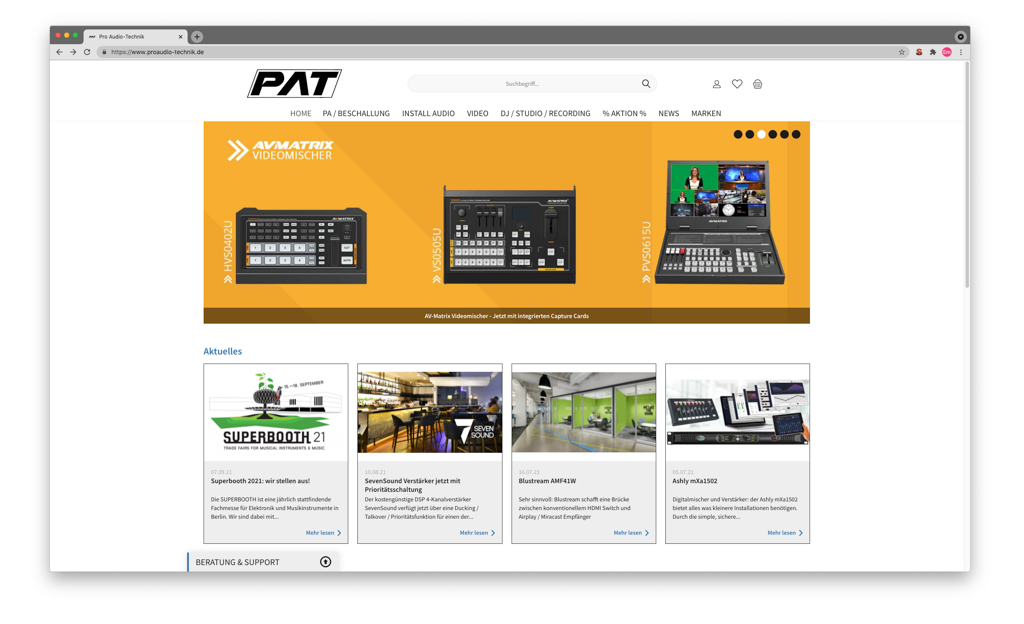 Die PAT GmbH (Pro Audio-Technik) hat ihre Online-Präsenz neu aufgestellt. Auf www.proaudio-technik.de präsentiert der deutsche Vertrieb ein breites Angebot an Audio-, Medien- und DJ-Technik sowie Produkte für den MI Handel.