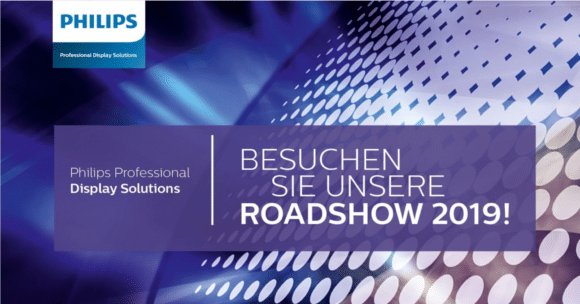 Auch im Jahr 2019 präsentiert Philips Professional Display Solutions seine aktuellen Produktneuheiten und Lösungen aus den Bereichen Professional TV und Digital Signage im Rahmen einer deutschlandweiten Roadshow. Stationen macht die Tour am 14. Mai in München, am 21. Mai in Düsseldorf und am 23. Mai in Hamburg. dimedis ist erstmals als Softwarepartner dabei und präsentiert auf allen drei Veranstaltungen die Digital Signage Softwarelösung kompas. Besonderer Clou: zum ersten Mal wird das neue Raumbuchungstemplate LCD Türschild auf einem 10-Zoll Endgerät von Philips gezeigt.