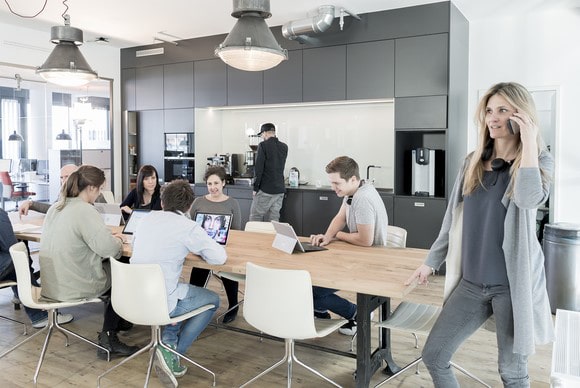 „Das mobile Arbeiten geht von der IT bis hin zu den Arbeitskonten, die ganz auf Vertrauen beruhen“, erklärt Münch. Es gibt nur für 60 Prozent der Mitarbeiter vor Ort Arbeitsplätze mit Dockingstationen und je zwei Monitoren sowie leistungsfähiges WLAN, VPN und Voice-over-IP-Telefone. Außerdem können Mitarbeiter in den neuen Räumlichkeiten wählen zwischen vier Arbeitszonen: Concentrate, Collaborate, Communicate und Contemplate. Die neue Arbeitsweise soll nicht nur bei Kunden, sondern auch bei neuen Mitarbeiter Zuspruch finden.