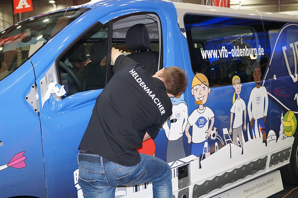 Kick-off zur Automesse Oldenburg: Live-Folierung eines Mannschaftsbusses vom VfB Oldenburg . (Bild: Pommerel )
