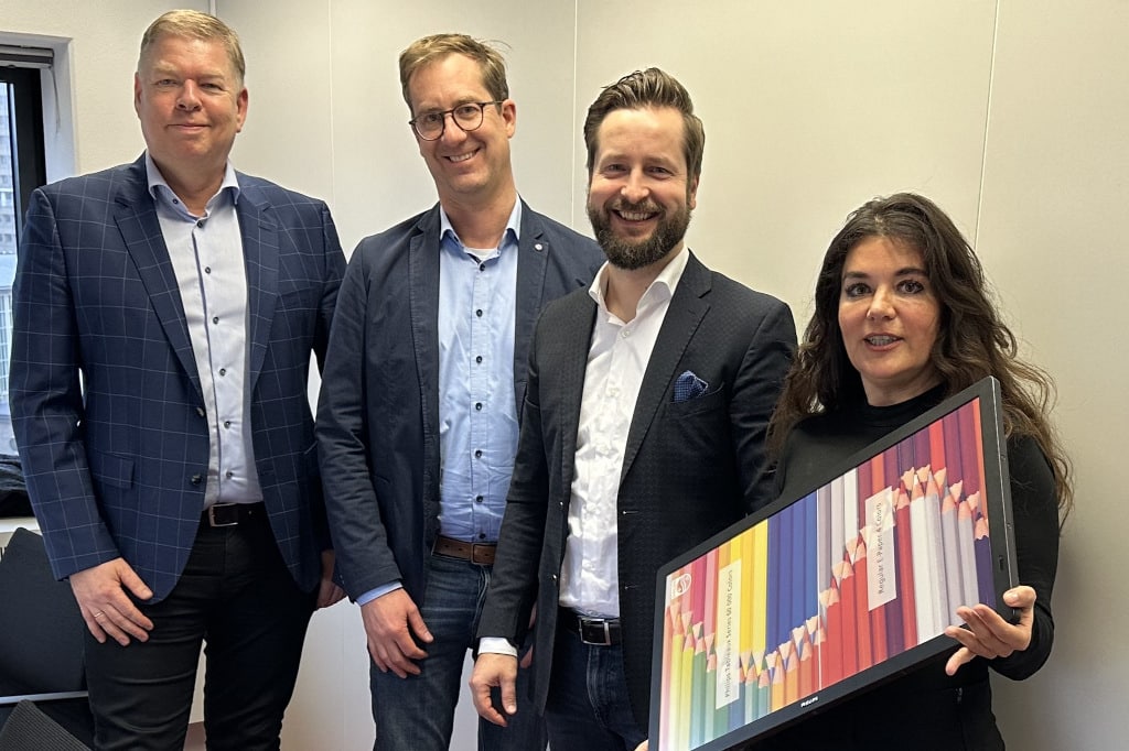 V.l.n.r.: Martijn van der Woude, VP Global Marketing and Business Development, Thomas Tennagels, Gründer der Tennagels Medientechnik, Michael Tölle, Leiter Media & Analytics bei Telekom Deutschland, und Nadia Riahi, Sales Manager Signage DE bei PPDS (Bild: PPDS)