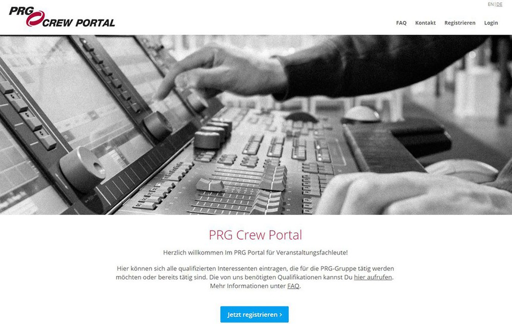 Das neue Crew-Portal von PRG (Bild: Screenshot / PRG)