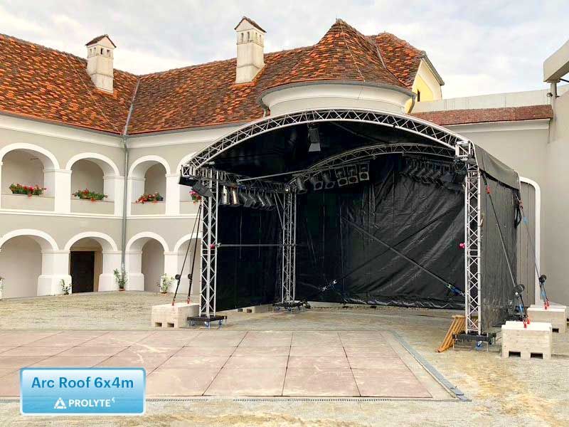 Kurzfristig hatte sich das im österreichischen Bischofshofen ansässige Unternehmen E2 Event Engineering für das 6 × 4 m große Bühnendach Arc Roof entschieden. Pünktlich zum Start einer Veranstaltungsreihe wurde das fertigte Bühnendach geliefert.