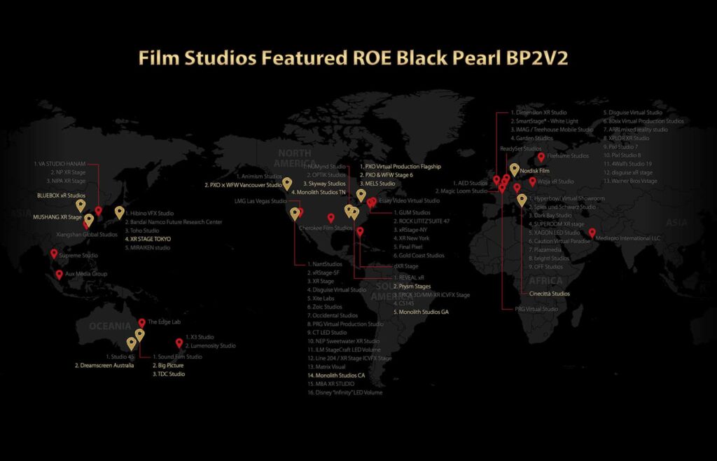 Die BP2V2-Panels von ROE Visual sind in Produktionsstudios auf der ganzen Welt zu finden und haben inzwischen einen bedeutenden Marktanteil. Die Black Pearl-Serie hat aufgrund ihrer Leistung das Vertrauen und den Ruf zahlreicher Kunden in Nordamerika, Europa und dem asiatisch-pazifischen Raum gewonnen. Studios, die mit BP2V2-Displays ausgestattet sind, bieten Filmemachern neue Möglichkeiten, ihre Produktionsabläufe zu optimieren und flexible und kostengünstige Aufnahmelösungen zu schaffen.