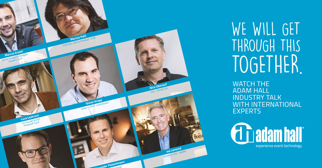 Mit dem Industry Talk reagierte die Adam Hall Group auf die weltweiten Entwicklungen des COVID-19 Coronavirus. Unter der Moderationsleitung von Marcel Courth, Chefredakteur von Production Partner & Publisher der Unit Professional Technolgy & Live-Communication, und Adam Hall CEO Alexander Pietschmann sprachen unter anderem Nico Ubenauf, CEO satis&fy, Marcus Pohl, Vorstandsvorsitzender ISDV & Präsident IGVW, und Joe Lamond, Präsident & CEO NAMM, über die drängendsten aktuellen Maßnahmen, sowie potenzielle Wege aus der Krise.