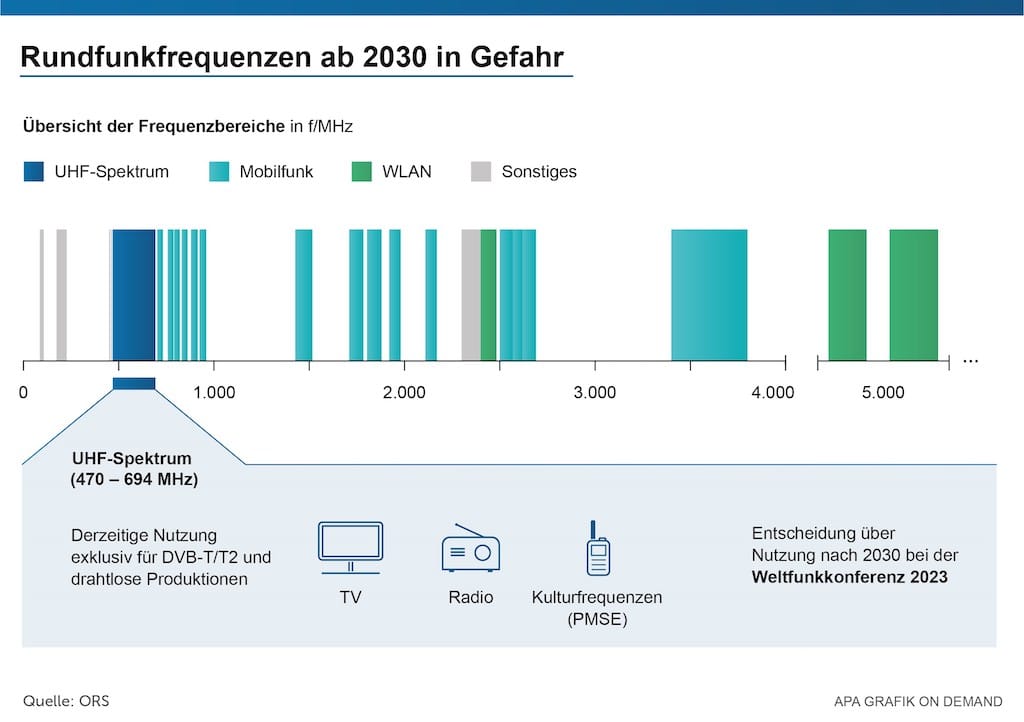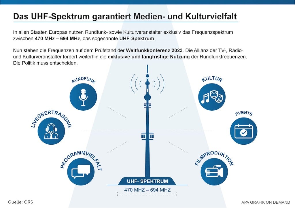 Öffentlich-rechtlicher und privater Rundfunk brauchen das UHF-Spektrum, damit ihre Programmangebote kostengünstig, einfach und somit niederschwellig terrestrisch übertragen werden können. „Radio und Fernsehen sind die am stärksten genutzten Medien, denen die Menschen in Österreich zudem das größte Vertrauen entgegenbringen. Öffentlich-rechtlicher Rundfunk im Speziellen muss seiner medienpolitischen Verpflichtung zur Versorgung der Bevölkerung, insbesondere in Zeiten von zunehmenden Umweltkatastrophen, Gesundheitskrisen oder geopolitischen Konflikten, nachkommen können. Dazu gehört Infrastruktursouveränität über ein terrestrisches Sendernetz“, betont Dr. Harald Kräuter, Direktor für Technik und Digitalisierung des ORF.