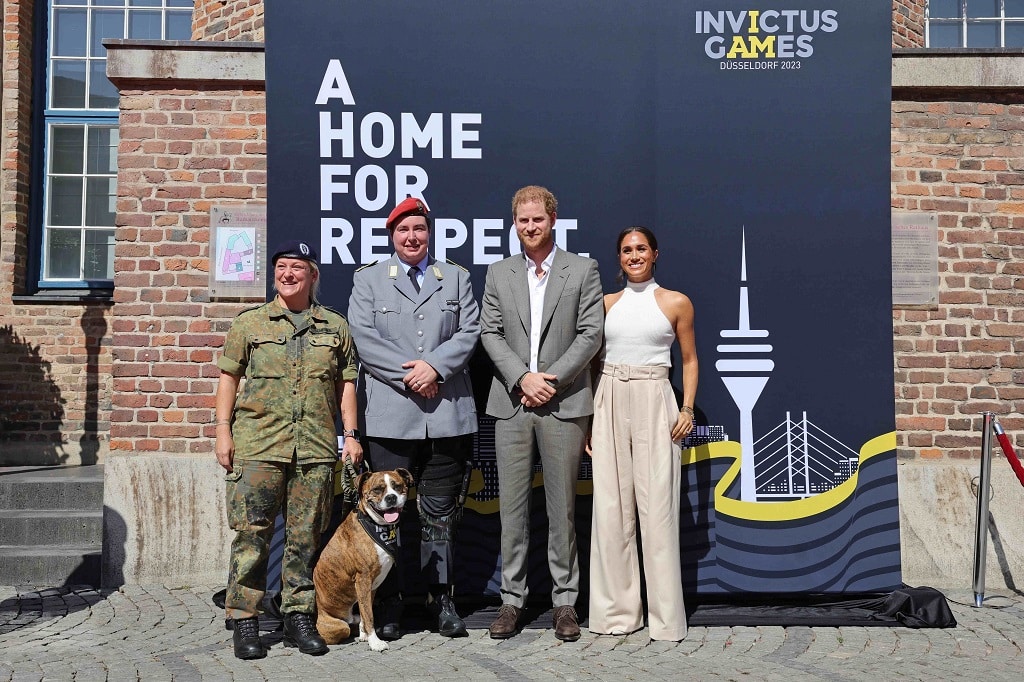 Prinz Harry, Herzog von Sussex, und Meghan, Herzogin von Sussex, mit Teilnehmenden der letzten Invictus Games während des Invictus Games Düsseldorf 2023 – One Year To Go Events, am 06. September 2022 in Düsseldorf (Bild: Chris Jackson/Getty Images für Invictus Games Dusseldorf 2023)
