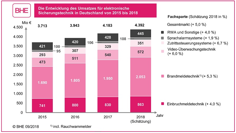 Umsatzschätzung 2018 für den Sicherheitsmarkt (Bild: BHE 09/2018)