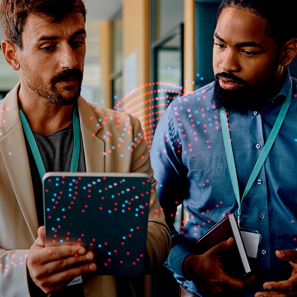 Zwei Männer schauen auf ein Tablet(Bild: Sharp)