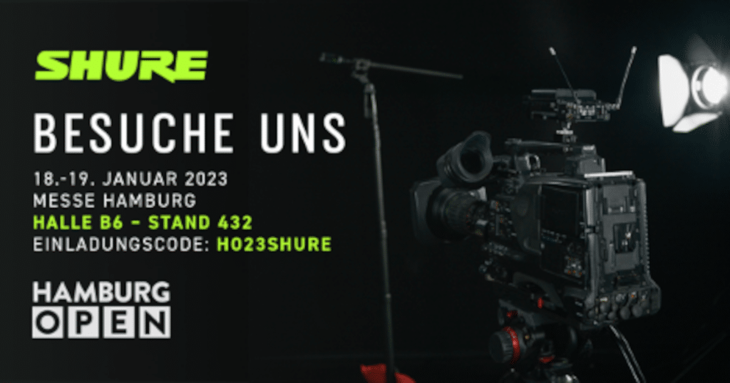 Shure bringt zur Hamburg Open, die vom 18. bis 19. Januar 2023 im Congress Center Hamburg (CCH) stattfindet, die Neuprodukte UniPlex und AD600 mit, die die Besucher:innen an Stand B6.432 kennenlernen können. Neben dem Besuch der Ausstellung gibt es auch Möglichkeiten zum Networken sowie Vorträge zu ausgewählten Themen.