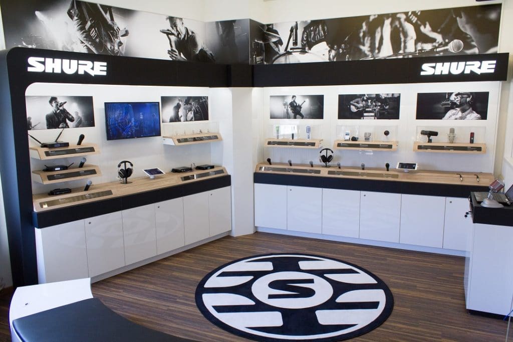 Individuelle Shop-in-Shop-Installationen bieten künftig an zwei neuen In-Store-Präsenzen in Berlin und Frankfurt am Main individuelle Testmöglichkeiten für Mikrofon- und In-Ear-Lösungen von Shure im stationären Handel.