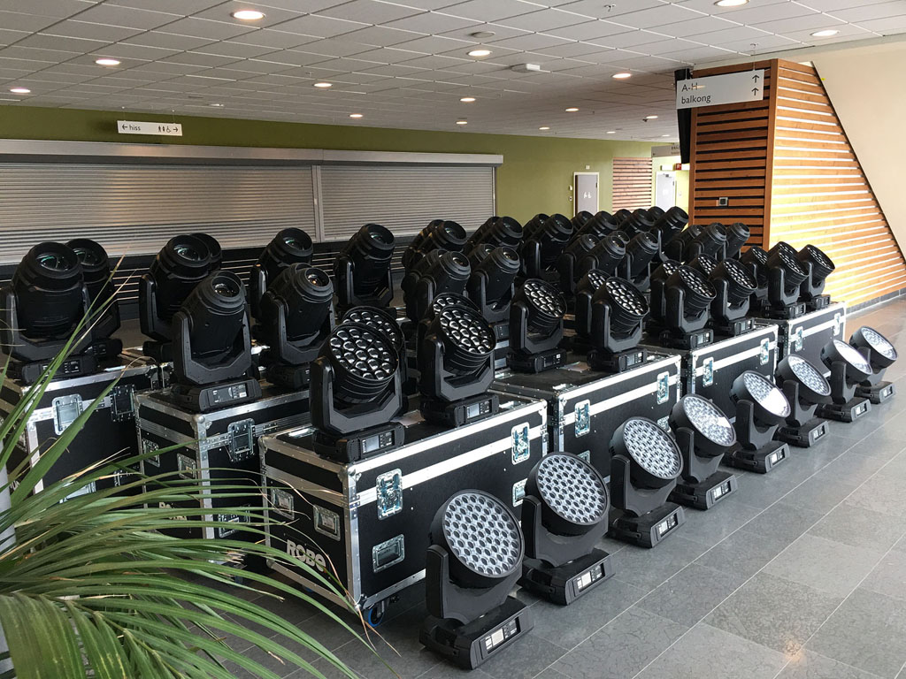 Vor Corona wurden die Robe Leuchten bei Events in der Skovde Arena eingesetzt: zwei Konferencen für Volvo und eine 40-Jahr-Feier für den schwedischen Baumarkt JULA. Die Leuchten kamen außerdem beim 60. Geburtstag von Benders, Schwedens größten Dachpfannenhersteller und der Sweden Game Conferenz, einem Meeting für Game Developer und Start-Ups zum Einsatz.
