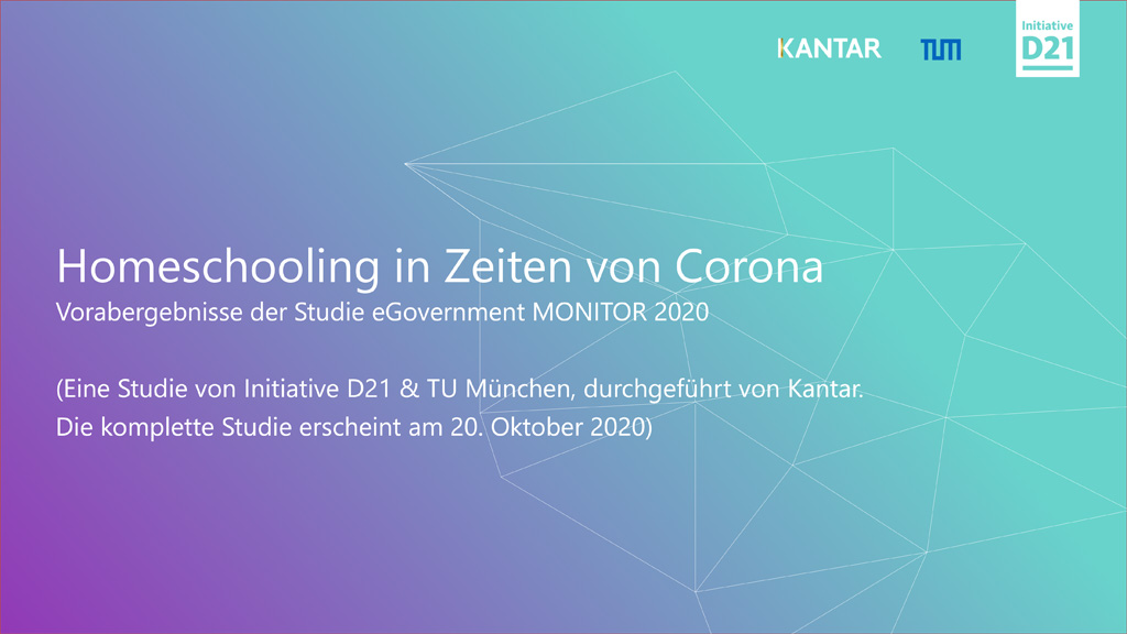 In 85 Prozent der befragten Haushalte, in denen schulpflichtige Kinder leben, fand während der Corona-Epidemie digitaler Schulunterricht bzw. ein digitaler Austausch mit den Lehrkräften statt. Zu diesem Ergebnis kommt die Studie eGovernment Monitor 2020 der Initiative D21 und der Technischen Universität München (TUM), durchgeführt von Kantar.