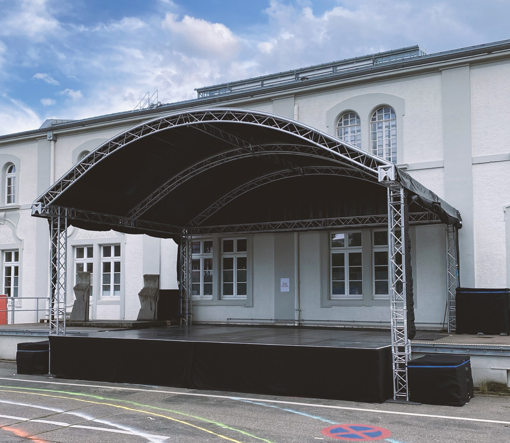 Tecstage Freiburg investiert nach der Anschaffung von vier F34 SmartPA Towern auch in eine 8 × 6 m Rundbogenbühne von Global Truss.