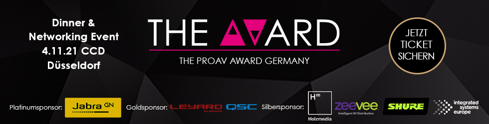 Am 4. November 2021 zelebrieren wir die deutsche ProAV-Branche. Sichern Sie sich nur noch heute die Tickets zum vergünstigten Early-Bird-Preis und seien Sie bei der diesjährigen AVard-Preisverleihung im CCD Düsseldorf dabei.