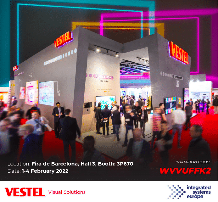 Vestel wird auch 2022 wieder auf der ISE (Integrated Systems Europe) in Barcelona dabei sein. Die ISE wurde im Jahr 2004 ins Leben gerufen und gilt als maßgebliche Veranstaltung für Digital Signage Lösungen und professionelle AV-Systemintegration in Europa.