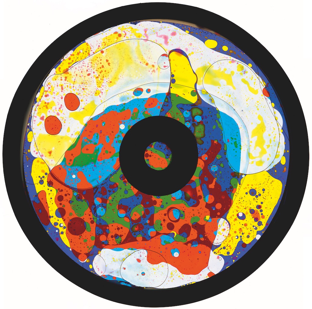 Ölräder: Öle, die zwischen drei runden Glas- oder Acrylscheiben eingebettet sind, werden von der Projektorlampe erwärmt, und während sich das Rad dreht, entstehen immer neue Muster. Diese werden bis heute von Optikinetics hergestellt. (Bild: Optikinetics)