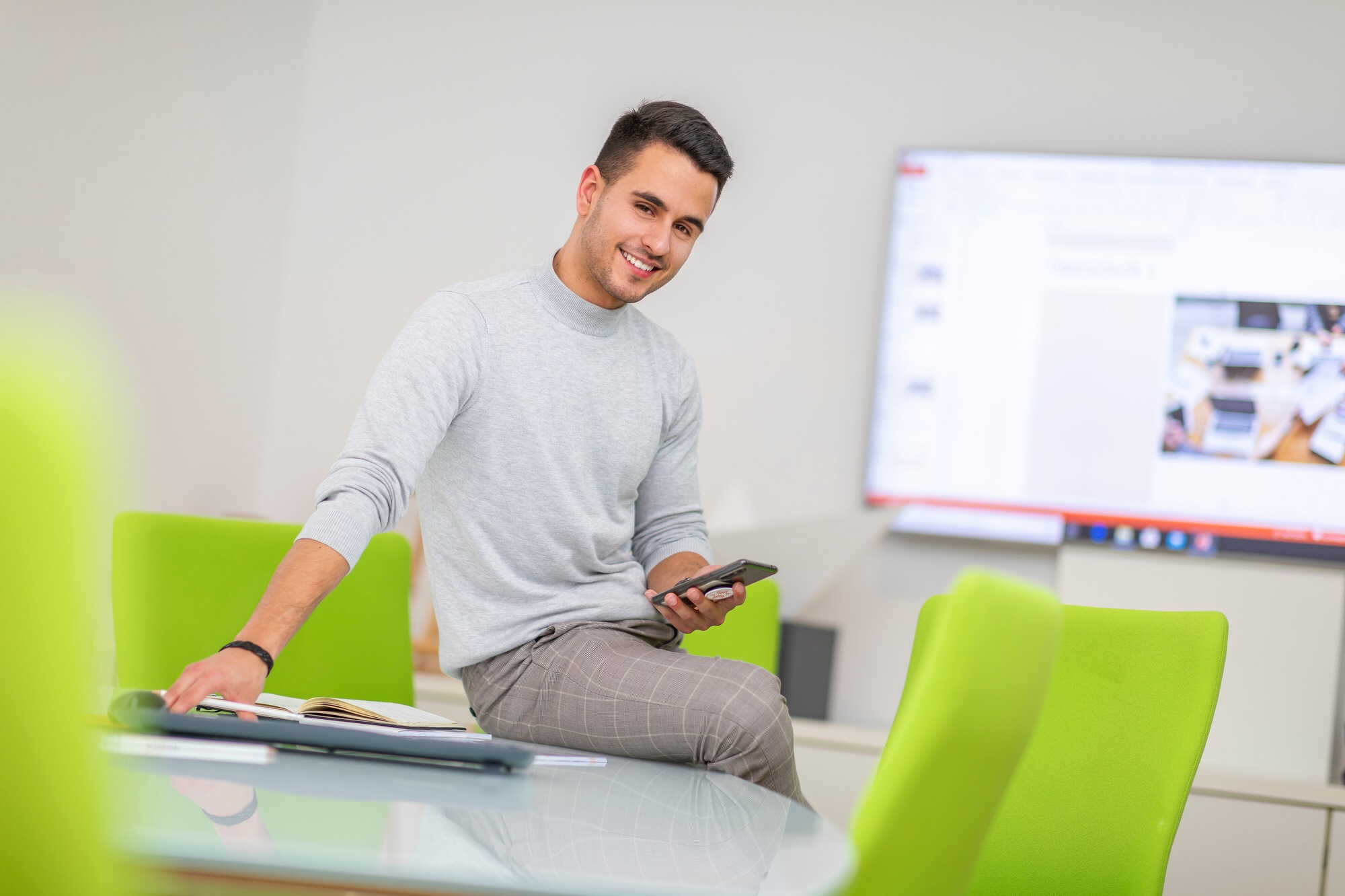 Die praxisnahen Studieninhalte konnte der Student des Masters „Business Transformation Management“ schon jetzt im Arbeitsalltag anwenden: „Die Inhalte decken bisher genau das ab, was für mich persönlich interessant am Studiengang klang. Mein erstes Modul zum Beispiel drehte sich rund um Agilität, was zeitgleich bei uns im Unternehmen ein Thema war.“ Natürlich ist ein Fulltime-Job in Kombination mit einem Vollzeit-Studium eine Herausforderung, die es zu meistern gilt. „Da das Studium jedoch maximale zeitliche und örtliche Flexibilität gewährleistet, schaffe ich es meistens, alles ganz gut in Balance zu halten“, sagt Knoblich.