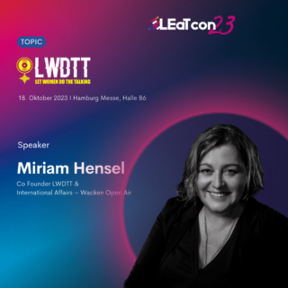 🤘 Miriam Hensel vom Wacken Open Air wird auf der Main Stage ein Live-LWDTT (Let Woman do the Talking) durchführen und dabei spannende und kompetente Frauen aus unserer Branche zu Wort kommen lassen.