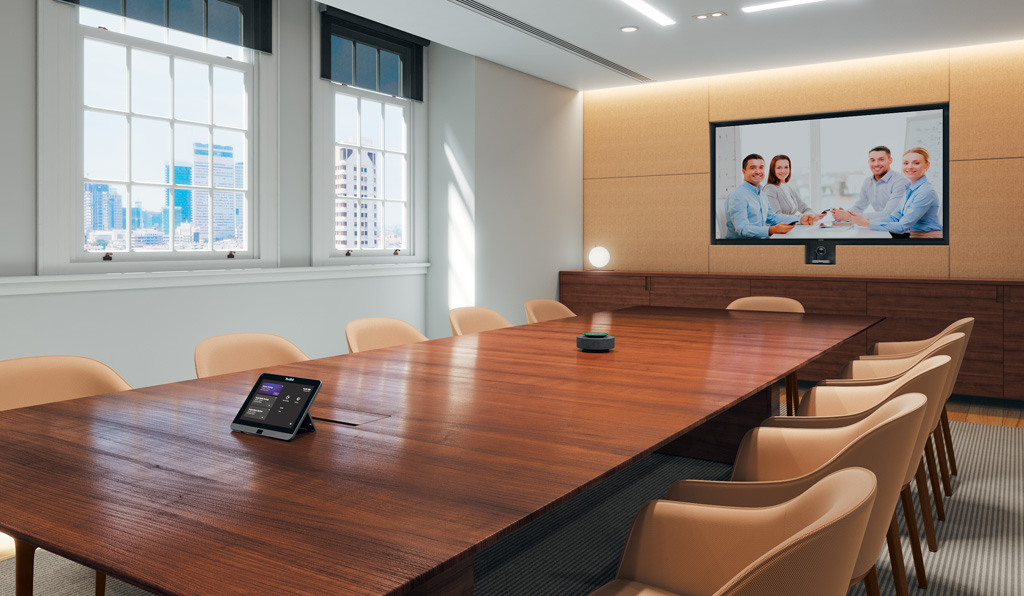 Als Teil dieses Konferenz-, Steuerungs- und Automatisierungs-Ökosystems können auch Belegungssensoren hinzugefügt werden, um die Systemleistung zu automatisieren und die Displays einzuschalten, wenn die Teilnehmer einen Raum betreten, und sie auszuschalten, wenn der Raum leer ist.