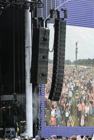 (Bild: Steve Jennings)„Die große Herausforderung besteht darin, den Schall so zu lenken, dass er bei den Besuchern des Festivals ankommt, und nicht zu weit weg getragen wird“, erklärt Bob McCarthy, Director of System Optimization bei Meyer Sound. „Daher haben wir einen Ansatz gewählt, der aus drei Komponenten besteht: Von der Hauptbühne aus beschallen wir den Bereich bis zu den ersten Delays, von diesen beschallen wir den Bereich bis zu den zweiten Delays. Auf diese Weise kann ich die Hauptbeschallung weiter nach unten ausrichten, da der Schall eine kürzere Strecke zurücklegen muss. Das zweite Set Delays hat fast so viel Power wie die Hauptbeschallung. Der Schall strahlt von einer hohen Position ab und zielt wieder nach unten. Am Ende wird noch ein kleineres Delay System eingesetzt, um den Bereich ganz hinten gut abzudecken. Das Ergebnis ist ein sehr guter Sound für das gesamte Publikum bei minimaler Störung der Nachbarschaft.“