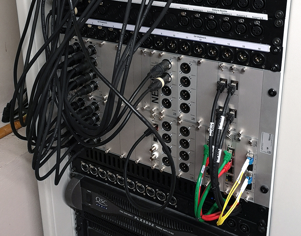 Das Besondere an der Installation ist, dass der Tonmeister während der Vorstellung parallel sowohl die klassische Beschallungsanlage als auch das 3D-Audiosystem nutzen kann. Es braucht keine Vorbereitungen und es muss nicht umgeschaltet werden. Möglich wird so eine an einem Theater bislang einmalige Installation dadurch, dass die Signale vom Astro Spatial System und die direkten Busausgänge von Crescendo-T über Summierer im Nexus-System zusammengefasst werden. So ist eine parallele Nutzung möglich. „Diese beiden Systeme – die klassische Beschallungsanlage und das 3D-Audiosystem – zusammen zu bringen, dafür braucht es eine Kreuzschiene und da ist Nexus schon einzigartig,“ erklärt Thomas Dürrbeck, Projektleiter bei Wilhelm & Willhalm. „Die Zusammenarbeit mit Stage Tec bei diesem Projekt war sehr eng und freundschaftlich. So reagierten die Berliner beispielsweise bis kurz vor der Fertigstellung des Mischpultes auf Änderungswünsche des Theaters im Layout und bei den Funktionsbelegungen.“