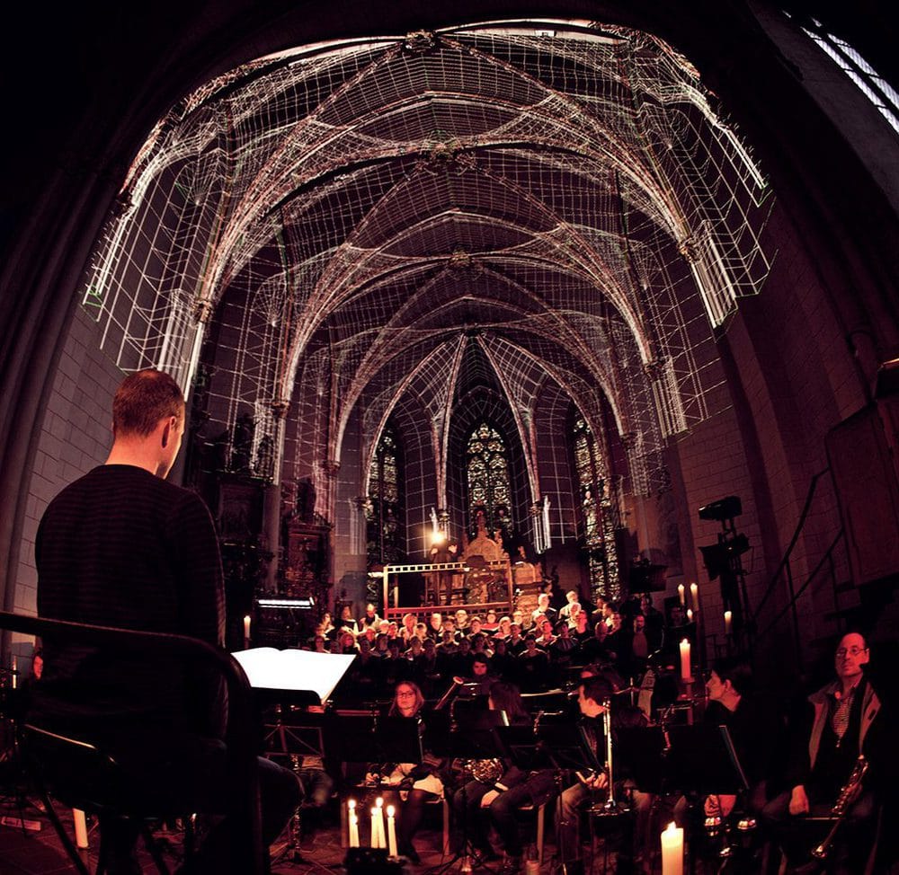 Unterstützt wurde die Inszenierung unter Intendant Matthias Faltz, der Camerata Mittelhessen und des Bachchors unter anderem durch drei Christie Projektoren in Kombination mit drei Christie Pandoras Box Dual Mediaservern, zwei Manager Pro, sowie einem Widget Designer Pro. Wichtig für die Licht- und Videogestaltung des Projekts war, dass sie vollkommen im Einklang mit der Musik und den besonderen räumlichen Gegebenheiten sein musste: „Wie bei vielen komplexen Mapping-Projekten ist die Grundlage von allem eine exakte geometrische Vermessung des Gebäudes oder Objekts, auf das projiziert werden soll“, so Finke. Daraus entstehe eine Simulation, die im Vorfeld genutzt werde, um die produzierten Inhalte beurteilen zu können. „Hier nutzen wir den 3D-Raum in Pandoras Box.“