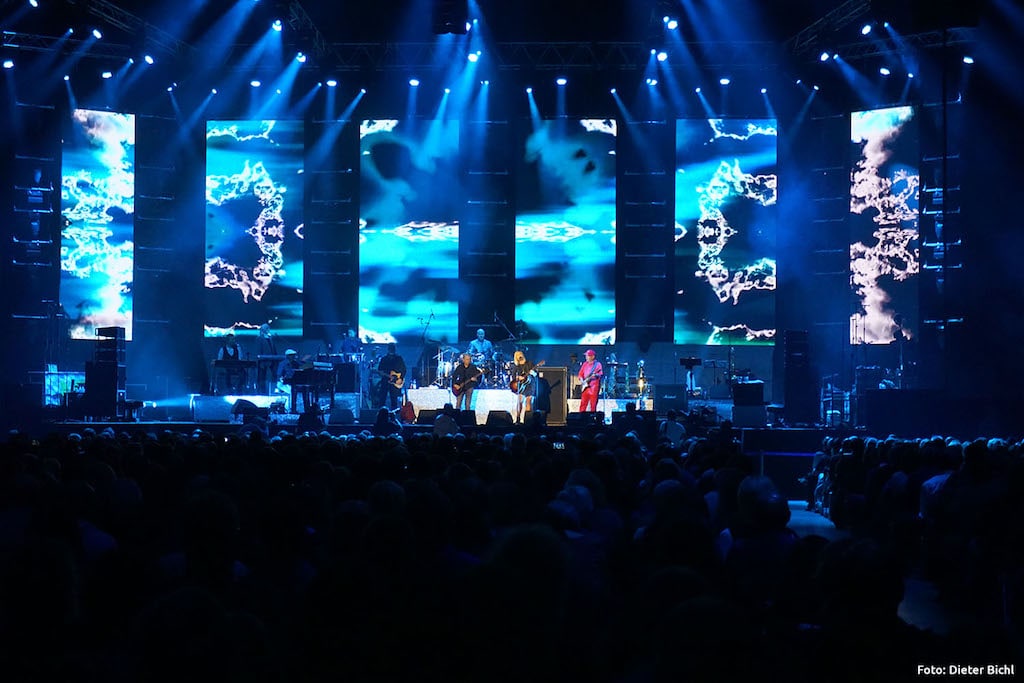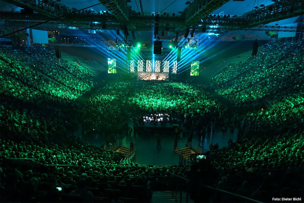 Im Besonderen stellte die richtige Auswahl und punktgenaue Installation der Audio- und Lichttechnik eine Herausforderung dar. Das ausgefeilte PA-Konzept von Mario Sterr mit Produkten aus dem Hause L-Acoustics erfüllte schließlich die hohen Erwartungen des Kunden und erzielte im Bereich Audio die gewünschte gleichmäßige Schallverteilung sowie einen homogenen Frequenzgang über die komplett zu beschallende Publikumsfläche. Darüber hinaus bot ein geflogenes Endfire-Bass-System eine homogene Bassverteilung, wobei es auf der Bühne vergleichsweise ruhig blieb – ein Vorteil für die DVD-Aufzeichnung.