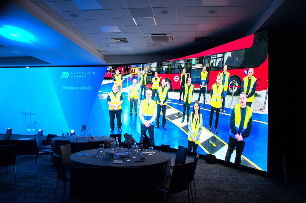 Tapestry Events ist mit der Gestaltung der Kulisse einer Hybridveranstaltung des Öko-Busunternehmens Alexander Dennis beauftragt worden, einer Tochtergesellschaft der NFI Group Inc.. Absen hat für das Event 200 Quadratmeter seiner PL2.5 LED-Paneele zur Verfügung gestellt.