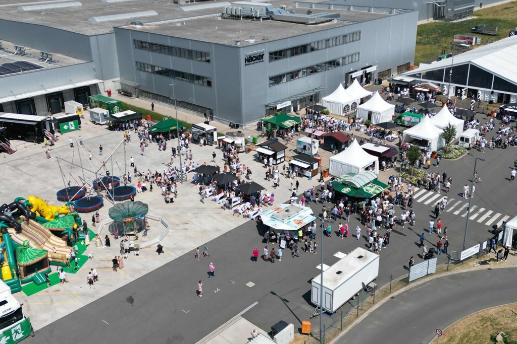Entstanden ist ein ganztägiges Familienfest mit Straßenfestcharakter, bei dem rund 3.800 Gäste – darunter die Mitarbeitenden mit ihren Familien – u.a. das neue Werk 5 von Häcker in Ostercappeln kennenlernen konnten. Ein Rahmen- und Mitmachprogramm sowie verschiedene Street-Food-Angebote waren Teil der Veranstaltung.