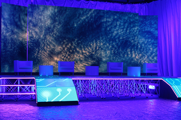 Der Aquilon RS4 steuert alle LED-Videowände des Studios, Bühnenbildschirme, einige Digital Signage Anwendungen an anderen Stellen im Gebäude sowie den Output für den Streaming-Encoder. Er verwaltet auch einen Chroma-Bildschirm, oracles und alle 4K-Eingänge für Hintergrundbilder.