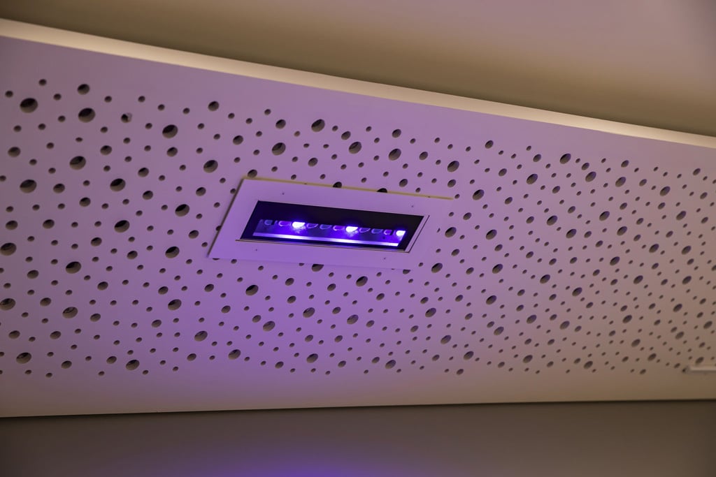 Die Steuerung der Stimmungsbeleuchtung ist in das IP-System des Gebäudes integriert. Sie ist so konzipiert, dass es für die Kunden im Raum so einfach wie möglich ist, die Stimmungen zu ändern und zu ihrer Veranstaltung passende Farbschemata zu erstellen. Das können sie entweder über wandmontierte Crestron-Touchpanels in jedem Raum oder aus der Ferne über ein Tablet.
