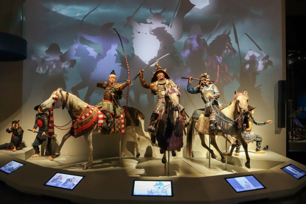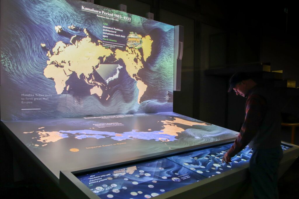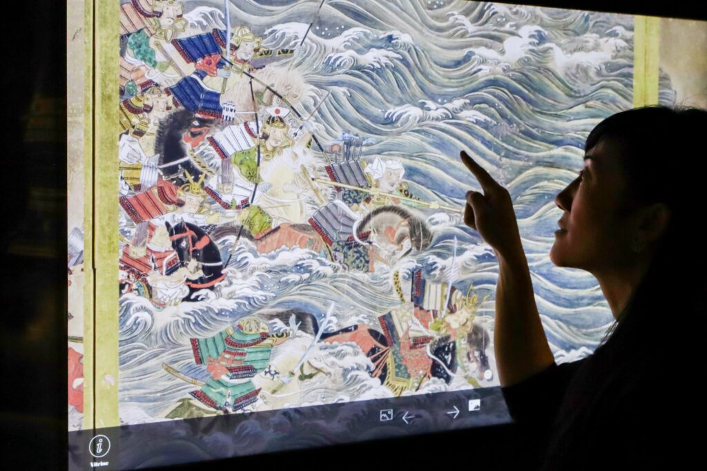„Es war eine ebenso reizvolle wie herausfordernde Aufgabe, die Menschen und ihre Kultur sichtbar zu machen, die all diese einmaligen Ausstellungsexponate einst hervorgebracht haben“, meint Michael Mondria, Managing Director Ars Electronica Solutions. „Die Besucher:innen sollen ein Stück weit erahnen können, wie das Leben in der Ära der Samurai war.“ Es gibt Stationen, die Informationen anbieten und andere, die einen spielerischen Zugang wählen und auf Interaktion abzielen. Immer wieder werden zudem Berührungspunkte mit unserer Kultur und unserem Weltbild heute herausgearbeitet.