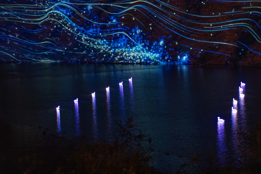 Für das diesjährige Festival hat Artabesk erneut seine Ausrüstung digitaler Projektoren zur Verfügung gestellt – darunter eine 300m-x-50m-Projektion auf eine Bergwand.