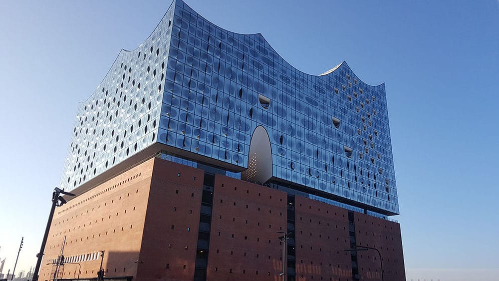 Die Architektur der Elbphilharmonie und des großen Konzertsaals gelten weltweit als einzigartig. Der gläserne Neubau umfasst neben den beiden Konzertsälen 45 Eigentumswohnungen, ein Vier-Sterne-Plus-Hotel mit 244 Zimmern und gastronomische Einrichtungen. Mit ihren teils gekrümmten und teils eingeschnittenen Glaspaneelen fängt die Elbphilharmonie die Reflexionen des Himmels, des Wassers und der Stadt ein und lässt ein neues Raumgefühl zwischen Land, Wasser und Seeschifffahrt entstehen.