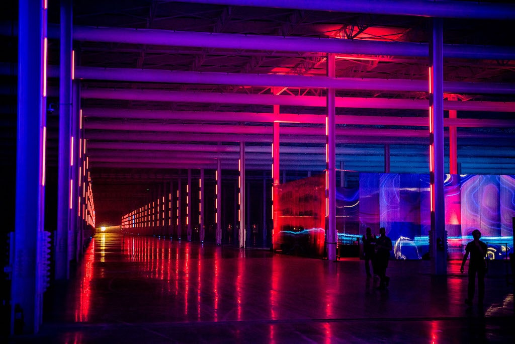 Der Licht- und Grafikdesigner Rob Ross hat bei der Einweihungsfeier von Teslas Gigafactory in Texas über 500 Astera Titan Tubes eingesetzt.