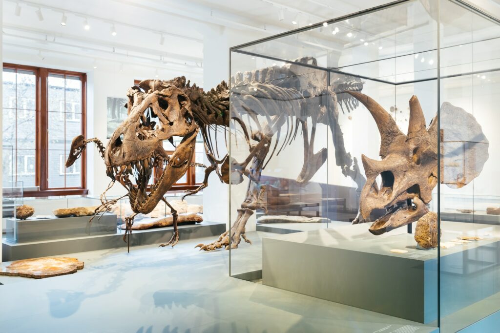 Natural History Museum, Oslo Tyrannosaurus-Rex und Triceratops-Schädel