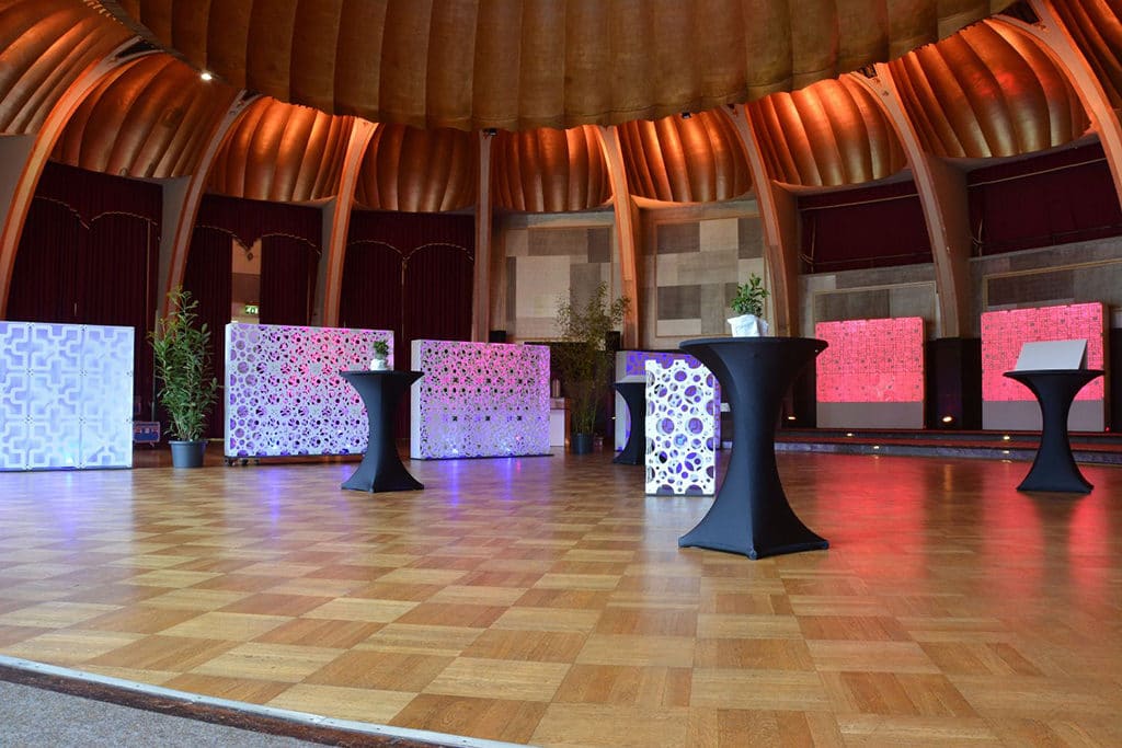 Um das Ambiente der Hospitality-Zone auch in der Deko wiederzugeben, kamen verschiedene kreative Aufbauten des modularen Setbausystems von Atomic Rental Solutions zum Einsatz. Mit Super Columns und Super Walls aus 18 verschiedenen Designpanels schuf das G+B Projektteam eine besondere Atmosphäre. Projektleiter Enrico Hucke resümiert: „Trotz des umfangreichen und teilweise komplizierten Aufbaus war es eine sehr gelungene Veranstaltung, die durch die Unterstützung des gesamten Düsseldorfer G+B Teams zum Erfolg wurde.“