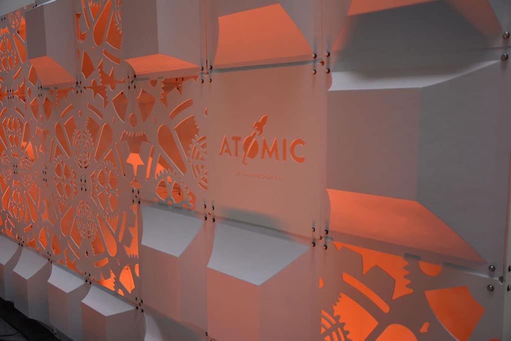 Die Niederlassung Düsseldorf ergriff die Chance und nutzte den einzigartigen Atomic-Aufbau in der Partnerlocation für ein zweitägiges „After-Tour“-Kundenevent. Bereits im Vorfeld wurden Einladungen versendet und individuelle Kundentermine für die Veranstaltung, die am 3. und 4. Juli stattfand, vereinbart. Anhand der verschiedenen Designelemente und einer Projektion auf ein geflogenes Backdrop aus Wafer-Panels demonstrierten die G+B Mitarbeiter ihren Kunden die verschiedenen Einsatzmöglichkeiten des flexiblen Stecksystems. Aufgrund der durchweg positiven Stimmen seitens der Besucher ist das Event als absoluter Erfolg für beide Seiten zu sehen. Die Niederlassung Düsseldorf von Gahrens + Battermann durfte bereits die ersten Anfragen nach Atomic-Aufbauten entgegennehmen und freut sich auf die Zusammenarbeit mit ihren Kunden.