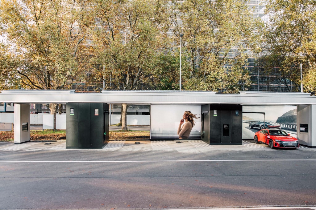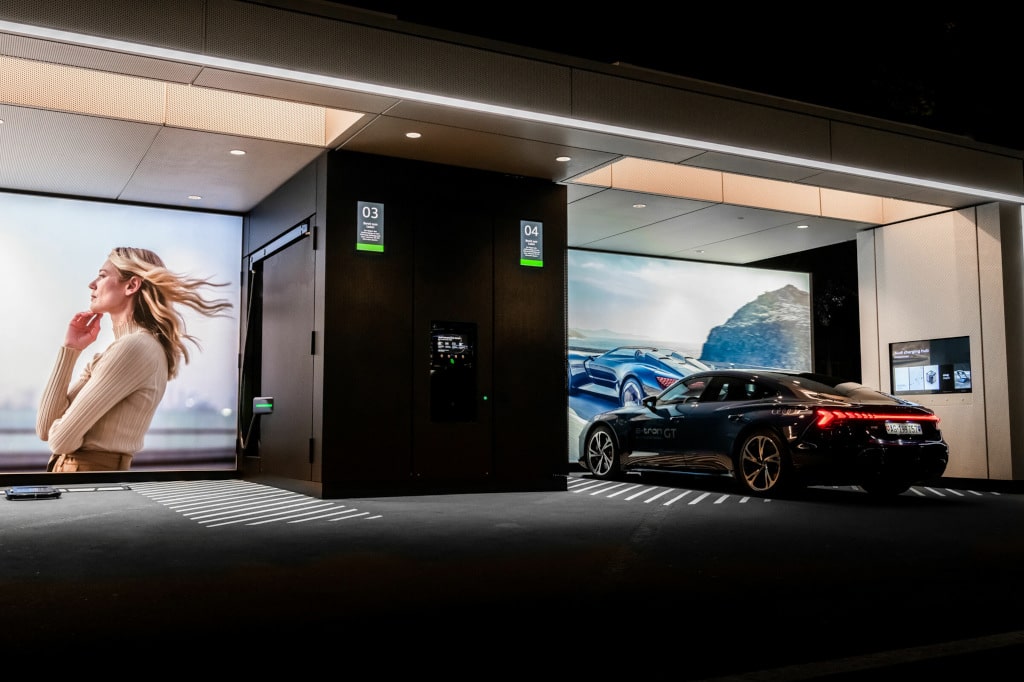 Audi charging hub mit LG Outdoor-Displays ausgestattet