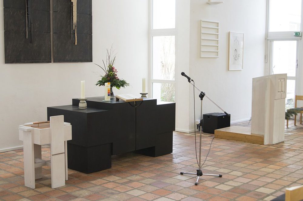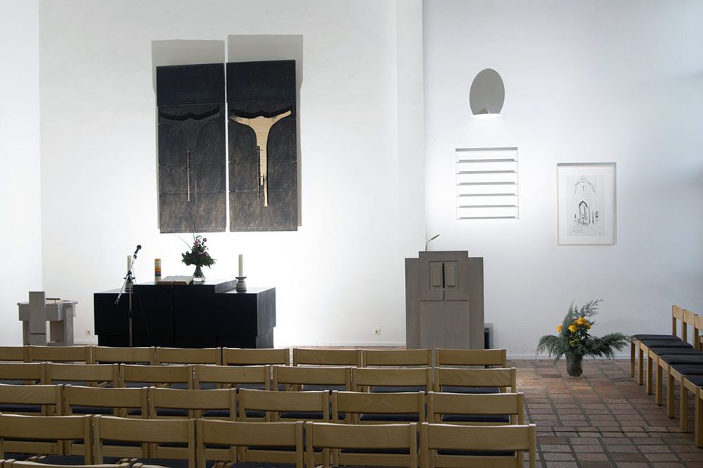 Im Andachtsraum wurden Linienlautsprecher (Fohhn Linea) in Kombination mit gezielt platzierten Stützlautsprechern installiert. Dies ermöglicht allen Gästen ein angenehmes und glasklares Klangerlebnis. Die Steuerung und Presetverwaltung für die unterschiedlichen Nutzungsarten und Zuspieler (Mikrofone, Orgel, externe Quellen) erfolgt zentral über eine Crestron Electronics Mediensteuerung.