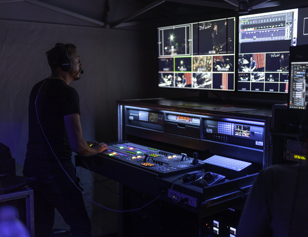 Live-Regisseur und Firmeninhaber Stuart Merser von Vis-A-Vis Video entwarf und erarbeitete den Multicam-Video-Workflow. Mehrere Schienensysteme von Blackcam dienten dazu, die Bands auch mit abseits der Bühne platzierten Kameras zu filmen.
